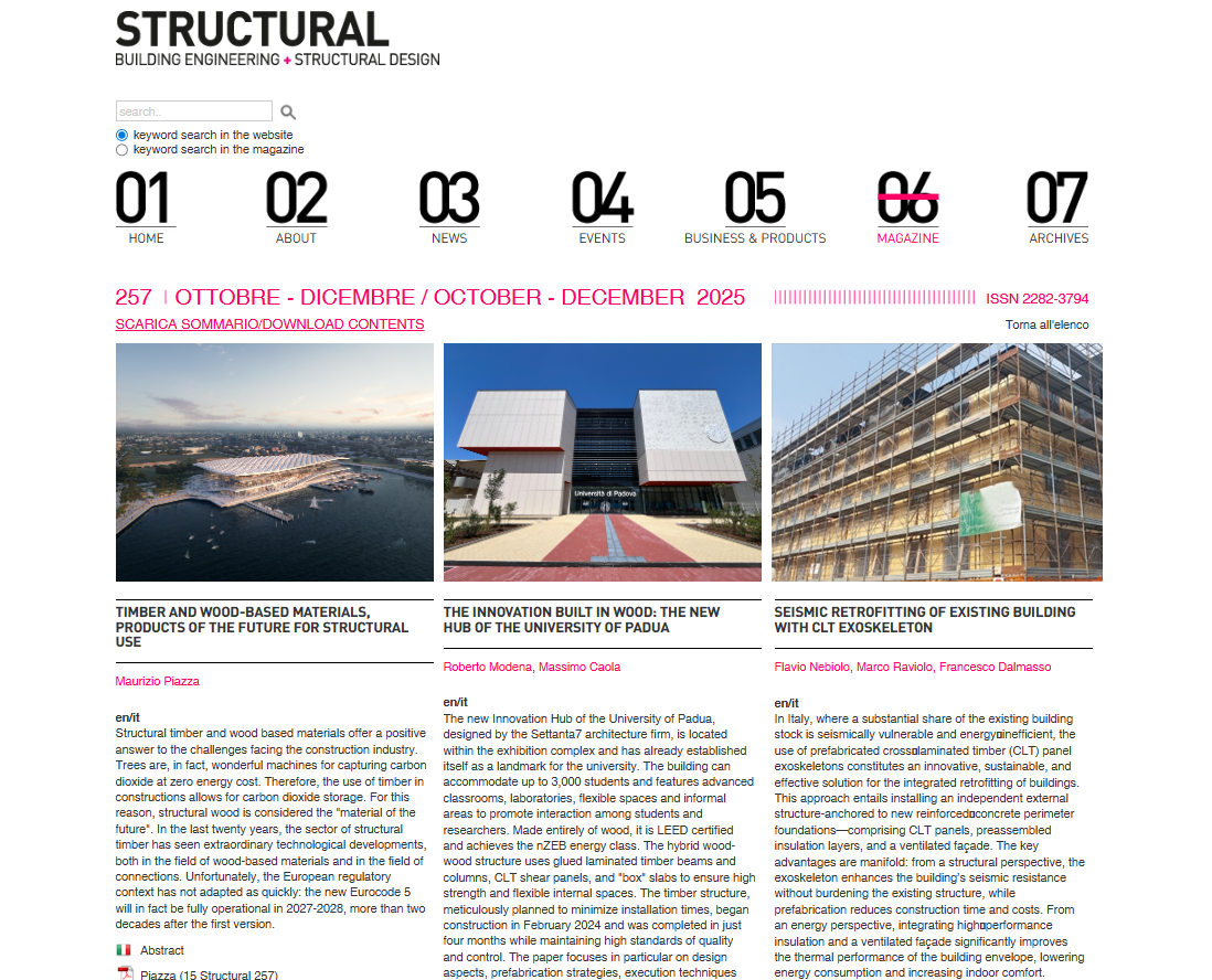 È stata recentemente pubblicata sulla rivista scientifica Structural una ricerca dedicata al retrofit antisismico degli edifici esistenti mediante esoscheletro in CLT (Cross Laminated Timber), a cura di Flavio Nebiolo, Marco Raviolo e Francesco Dalmasso, ingegneri del team d-quadro.