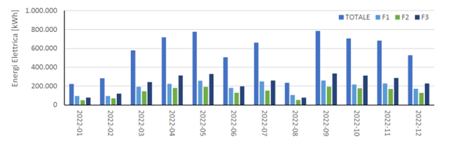 Analisi dei consumi elettrici divisi per mese e fascia di consumo.