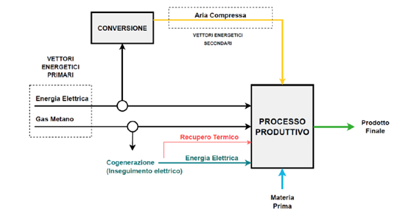 Schematizzazione dei vettori energetici usati nello stabilimento