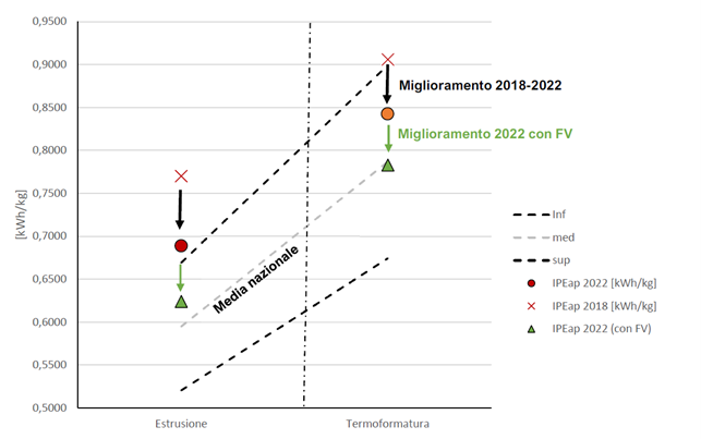 Inoltre, riportando l’analisi energetica a degli indicatori di prestazione energetica (IPE) riferiti al processo produttivo e ai servizi ausiliari/generali, diventa possibile fare una comparativa dell’impresa con i riferimenti globali delle aziende operanti nello stesso settore, permettendo di valutare: