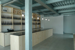 Particolare attenzione è stata dedicata alla zona vendita al minuto, dove sono esposte le diverse varietà di birra prodotte. Questo spazio è caratterizzato da un ambiente in parte soppalcato, che ospita la zona vendita ed esposizione, e da un volume a tutt’altezza, definito dalla zona filtro. Da qui si accede anche a un’area esterna coperta da una tettoia, creando una connessione fluida tra l’interno e l’ambiente naturale circostante. Le ampie vetrate e aperture favoriscono il dialogo tra gli spazi interni e il paesaggio montano.